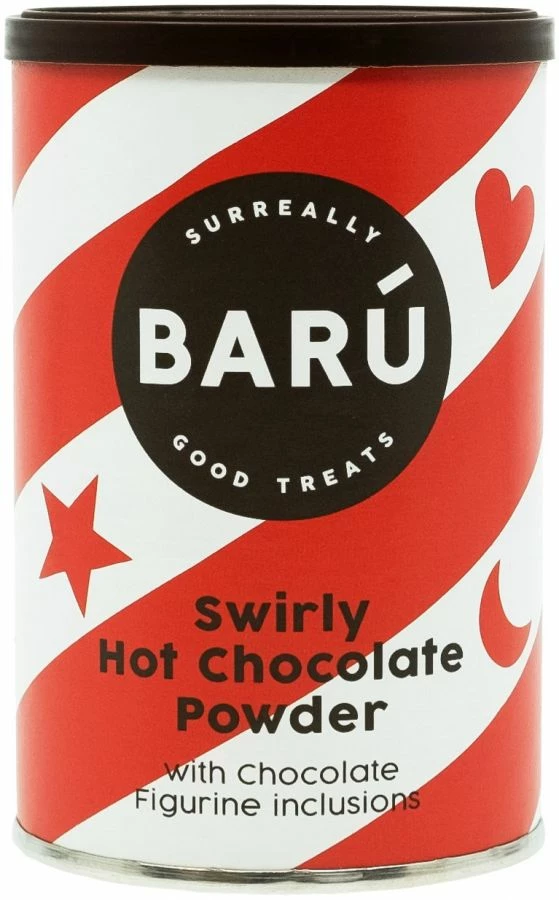 Barú Swirly Hot Chocolate Powder with chocolate figurines in funny shapes, mix with hot milk and enjoy! Makes up to 12 servings.