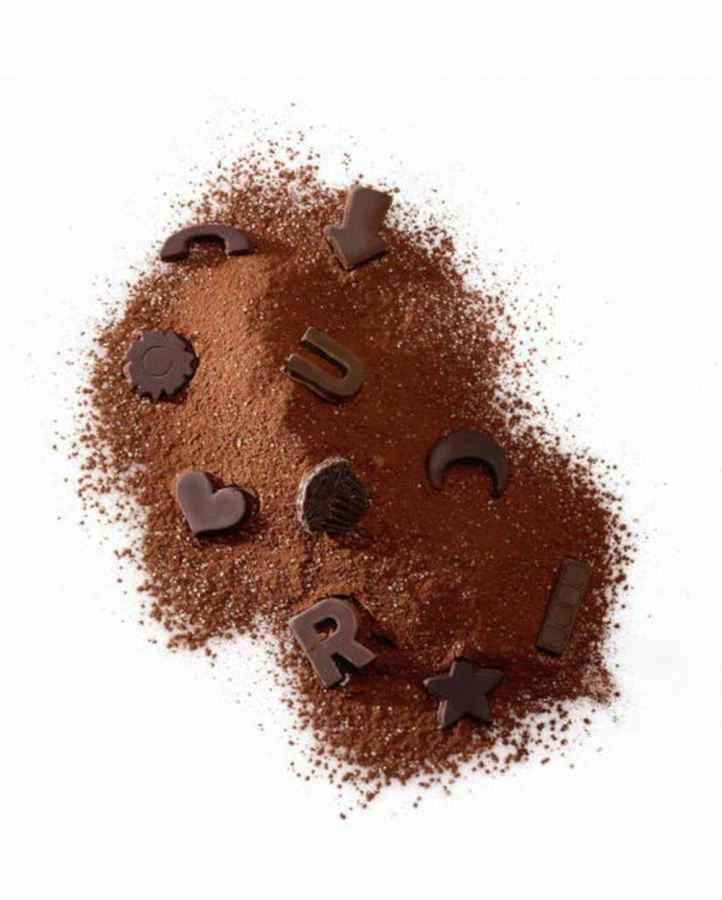 - Ingredients: sugar, cocoa powder, dark chocolate (cocoa paste, cocoa butter, emulsifier (soya lecithin) natural vanilla). The dark chocolate contains minimum 50 % cocoa.