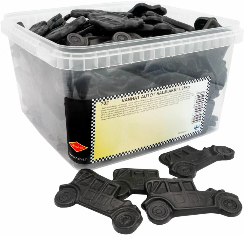 Halva Old Car sweets are among the most well-known sweets in Finland, they are made in Pitäjänmäki, Helsinki. Salty licorice is a classic Old Car taste.