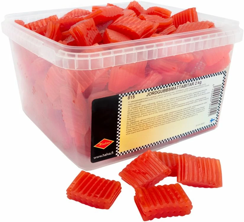 Halva’s strawberry-flavored licorice mat manages to surprise you pleasantly and is definately worth a taste! Made in Pitäjänmäki, Helsinki, Finland.