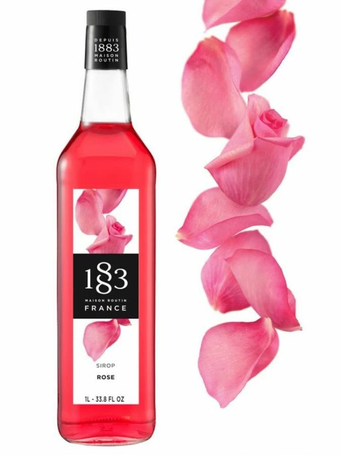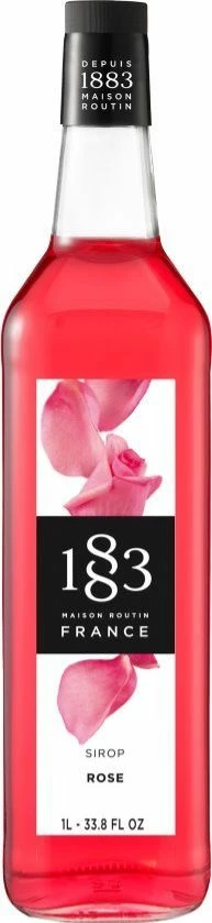 Maison Routin 1883 Rose Syrup with authentic rose flavour and a delicate rose fragrance. Adds a light, floral accent to cocktails, hot drinks, long iced drinks and more. Pale pink colour.