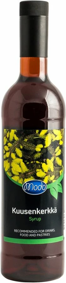 Modo Kuusenkerkkä spruce bud syrup is perfect for flavoring drinks and desserts. Traditionally, spruce bud syrup has been used in both drinks and baking and is believed to have a medicinal effect on general health. Spruce buds contain a lot of vitamins A and C as well as antioxidants.