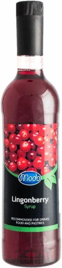 The deep red Modo Lingonberry syrup is suitable for drinks, cooking and baking. The authentic lingonberry juice gives this flavored syrup a really delicious taste!