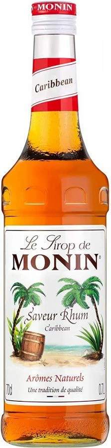 MONIN Caribbean Syrup with a nose of Caribbean rum aged in oak barrels; sweet rum taste with notes of fruits and vanilla. Use it with cocktails, flavoured milks, coffees and more.