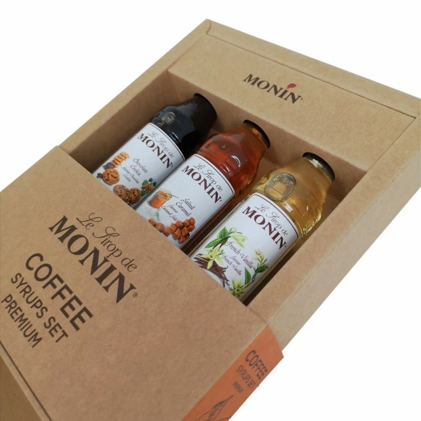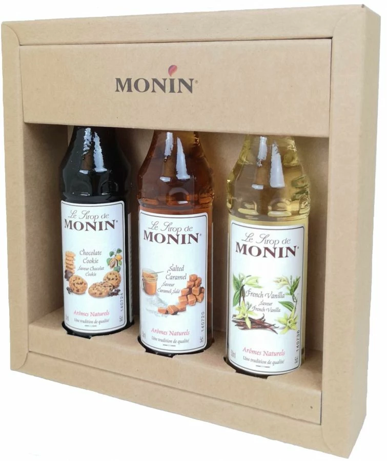 Three different syrups from Monin in a nice coffee gift set containing 50 ml each.