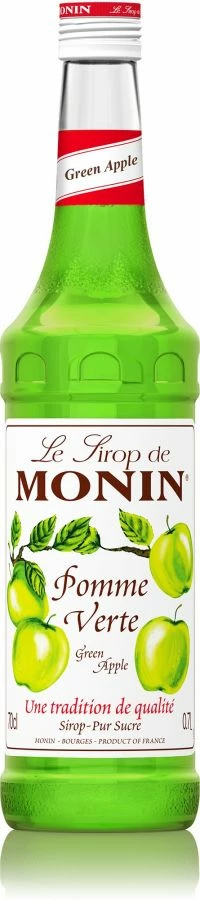 Conjure up crisp fruit cocktails and refreshing lemonades, sodas and teas with the juicy, refreshing taste of MONIN Green Apple syrup. MONIN Green Apple syrup is having this perfect balance between sweetness and a slightly acidic touch, particularly helpful with lemonade or martini cocktails. Nose of freshly cut Granny Smith apple; tart, sweet and juicy taste of green apple, very refreshing.