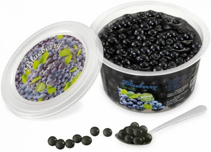 The Bubble Tea Blueberry fruit pearls taste great in bubble tea, cordials, cocktails and even in desserts. The Inspire Food Company fruit pearls contain real fruit juice.