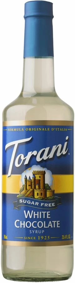 Torani Sugar Free White Chocolate syrup brings the flavor of lightly-toasted vanilla beans, cream, and sweet sugar. Infuse flavor in your coffee, espresso, tea, frappés, smoothies and more.